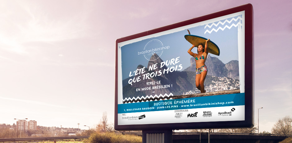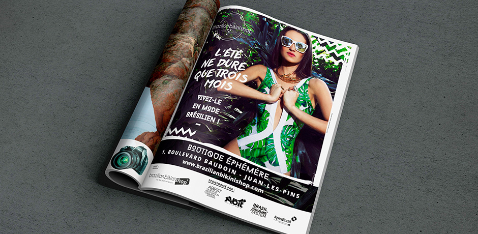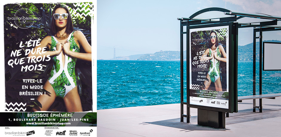 Campagne de publicité Brazilian Bikini Shop: annonce presse, affichage publicitaire abribus et aéroport
