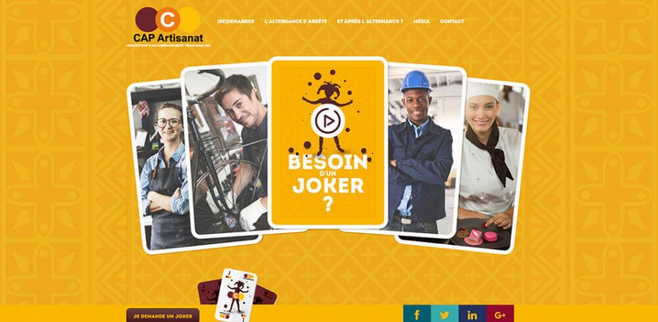 Campagne de la Chambre de Métiers et de l’Artisanat Nouvelle Aquitaine, et de la région Nouvelle Aquitaine, pour promouvoir le contrat d’accompagnement Cap Artisanat. Ce dernier vise à donner une seconde chance aux jeunes de moins de 25 ans en recherche d’emploi. Le visuel joue sur la stratégie que doit avoir cette personne en difficulté, en tirant la bonne carte, le bon métier, la bonne formation pour réussir. Comme tous les jeux, le joueur peut perdre, on démontre donc ici qu’il ne faut pas s’arrêter à un échec et que Cap Artisanat redonne une chance.