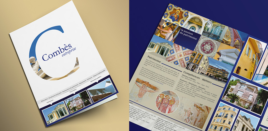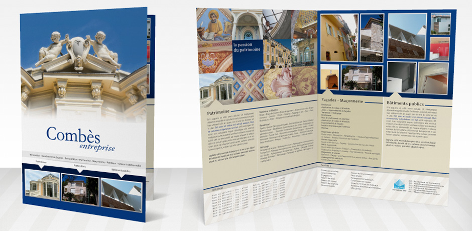 Création de supports de communication pour Combès entreprise: carte de visite, plaquette