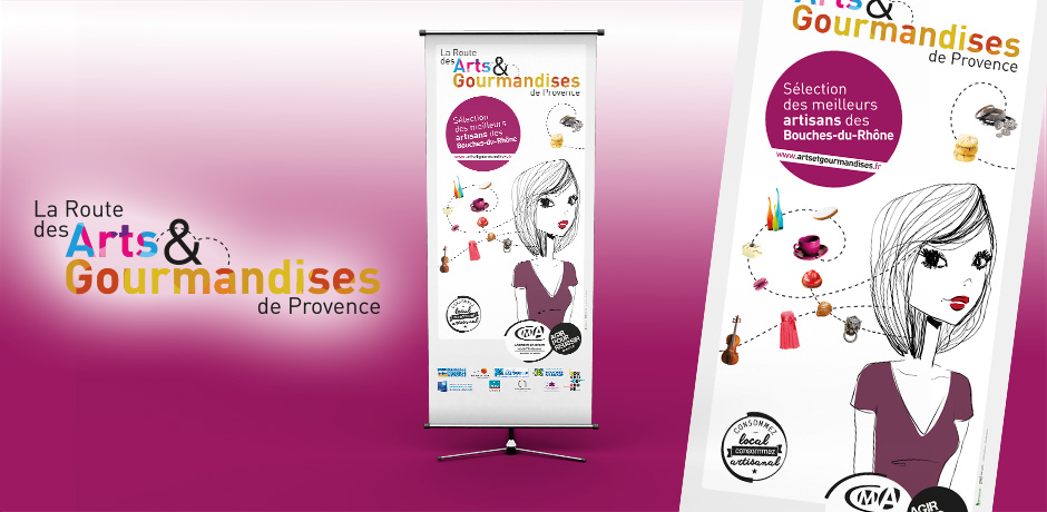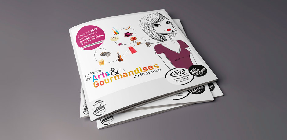 La Chambre de Métiers et de l’Artisanat des Bouches du Rhône a demandé à BHB Communication de réaliser le visuel de La Route des Arts et Gourmandises de Provence. Cette route est caractérisée par un guide dans lequel sont répertoriés les artisans d’art des Bouches du Rhône, classés par ville et par quartier et et dont l’activité est identifiable par un code couleur.