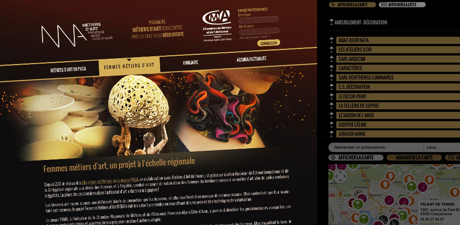 BHB communication a été chargé de la création du site Internet administrable avec un accès personnalisé pour chaque artisan lui permettant de créer et modifier sa fiche personnelle. Une carte interactive listant tous les artisans de la région PACA a également été réalisé.