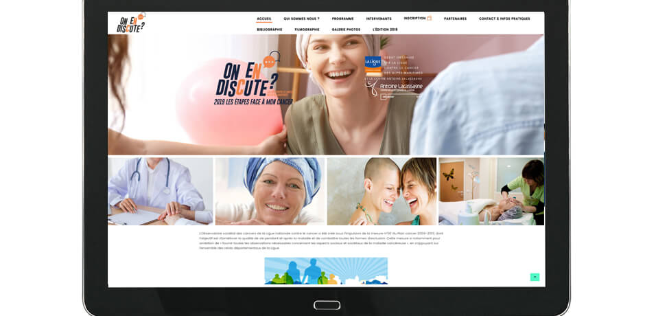 Pour la 2e année consécutive, La Ligue contre le Cancer des Alpes-Maritimes confie à BHB la communication visuelle print et digitale de son colloque annuel « On En Discute« . Forte du succès de la première édition pour laquelle nous avions créé la charte graphique, le site web et les documents de promotion et de signalétique autour du thème grand public « Santé et Environnement », la Ligue contre le Cancer des Alpes-Maritimes a souhaité cette année offrir une tribune et des paroles d’experts aux malades et à leurs proches autour du thème « les étapes face à mon cancer ».