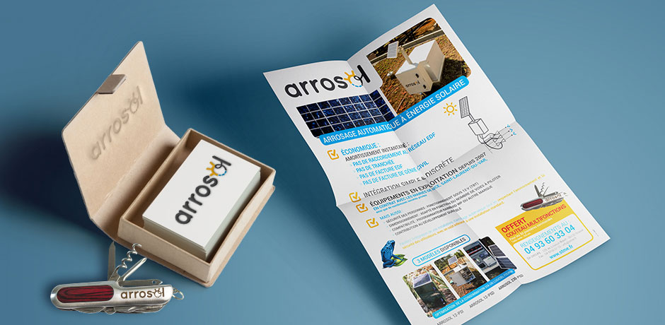 La société STME fabrique et commercialise des programmateurs d’arrosage automatique à énergie solaire. C’est pour développer cette activité qu’elle a fait appel à BHB pour sa stratégie de communication : tout d’abord, un logo spécifique Arrosol a été créé. Il reprend les codes environnement et métiers, et se veut suffisamment explicite pour permettre une bonne assimilation de ce produit innovant.