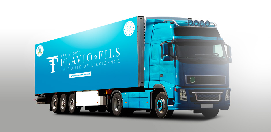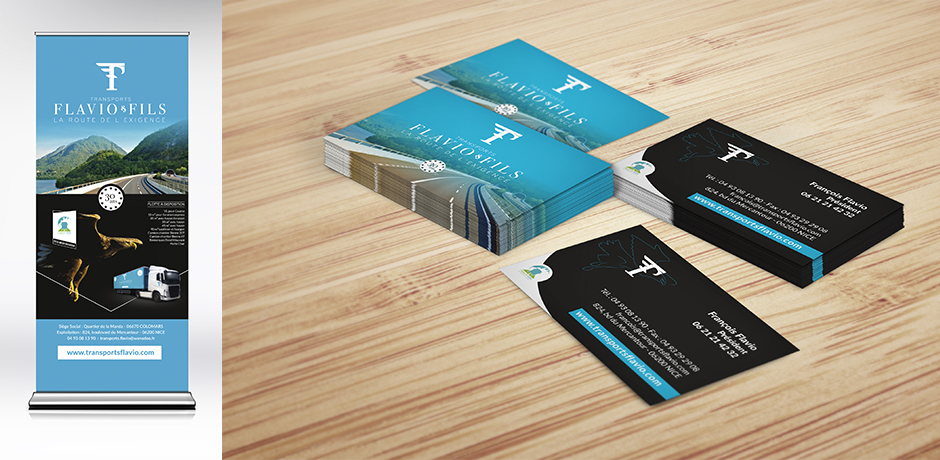 Création de supports d’édition pour Flavio & Fils : Affichage sur véhicule, carte de visite, roll up