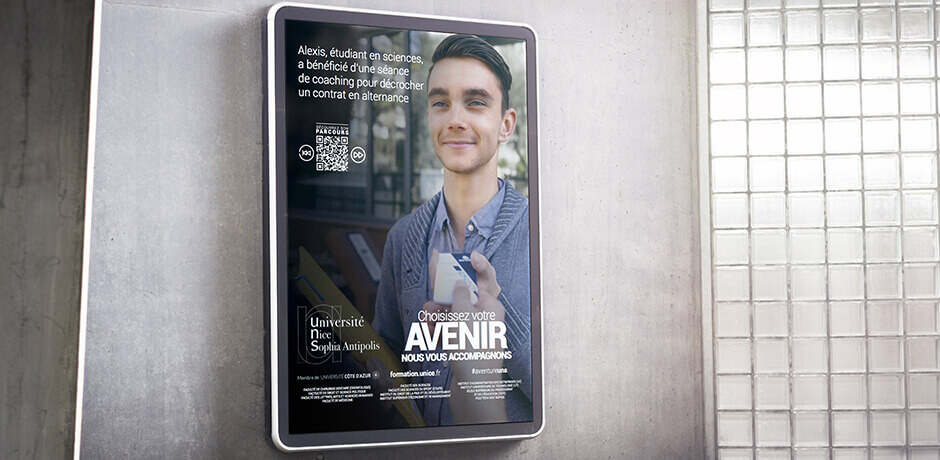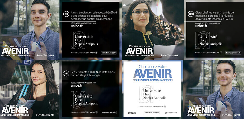 Admission Post Bac, dans une démarche inédite, le service communication de l’Université Nice Côte d’Azur et BHB communication s’associent pour créer cette campagne ensemble, en mélangeant leurs expertises. Main dans la main, chefs de projets, directrices artistiques, graphistes, photographes des deux entités ont lié leurs compétences pour créer une campagne vraie, basée sur le témoignage d’étudiants pour faire vivre l’accompagnement universitaire aux futurs bacheliers.